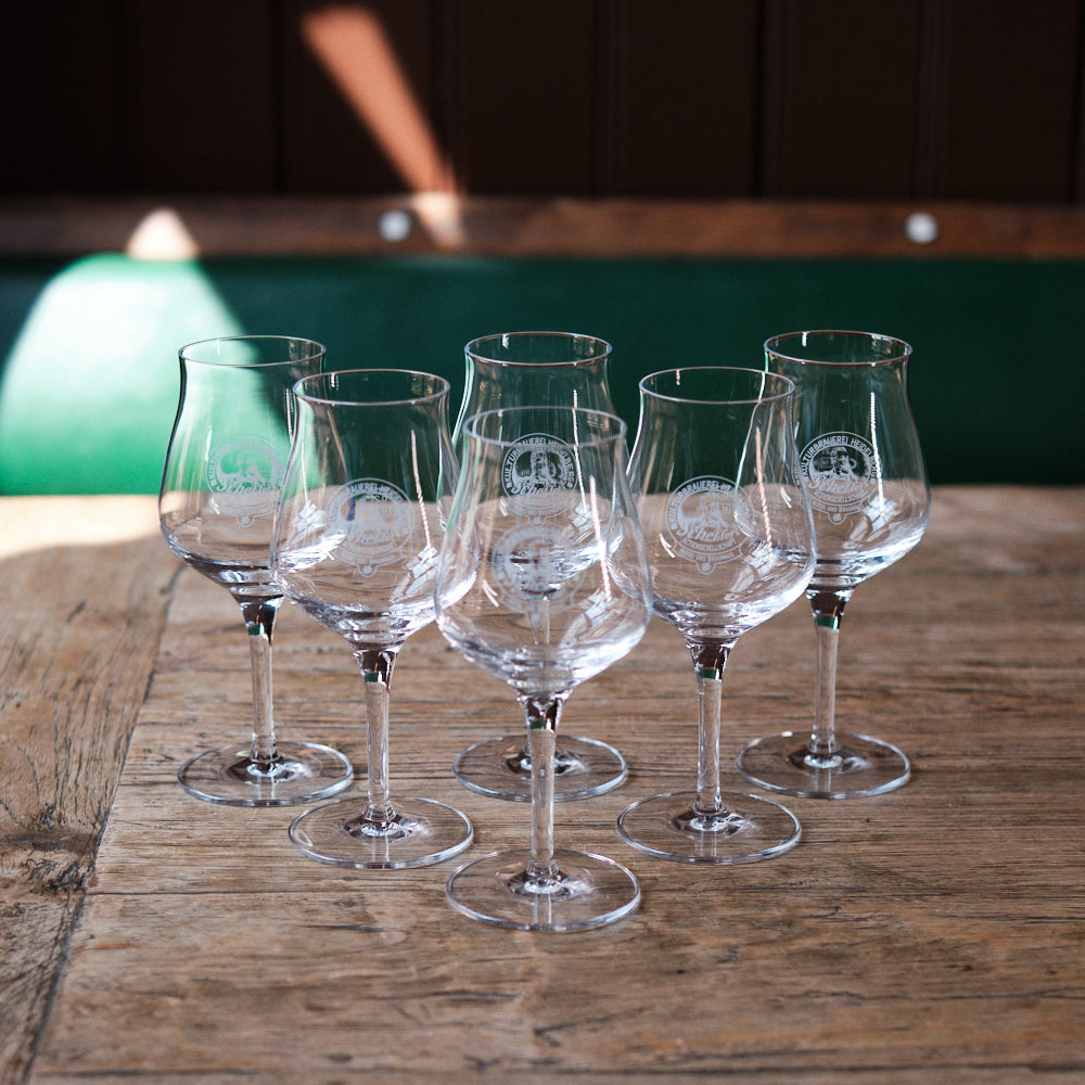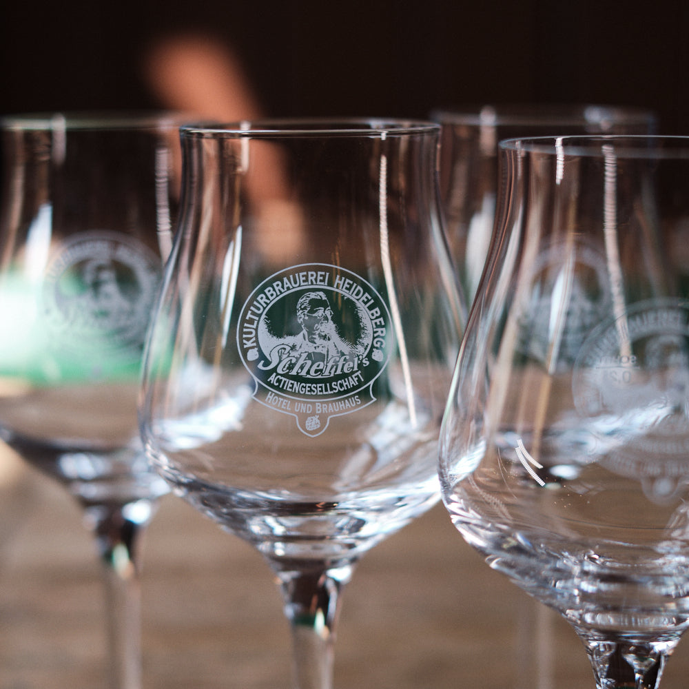 Die eleganten Tasting-Gläser kommen vornehmlich bei unseren Bierverköstigungen zum Einsatz. Die langgestielten, bauchigen Biertulpen sind eine Entwicklung des Glasherstellers Sahm und überzeugen durch hervorragende sensorische Eigenschaften. In den mehrfach designprämierten Gläsern entfalten sich Bieraromen in voller Pracht. Das edel gravierte Scheffel’s-Logo sorgt auch zuhause für Kulturbrauerei-Feeling pur.