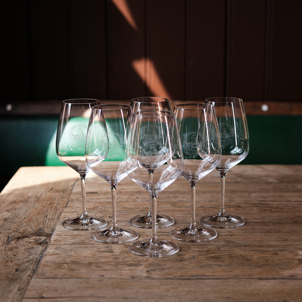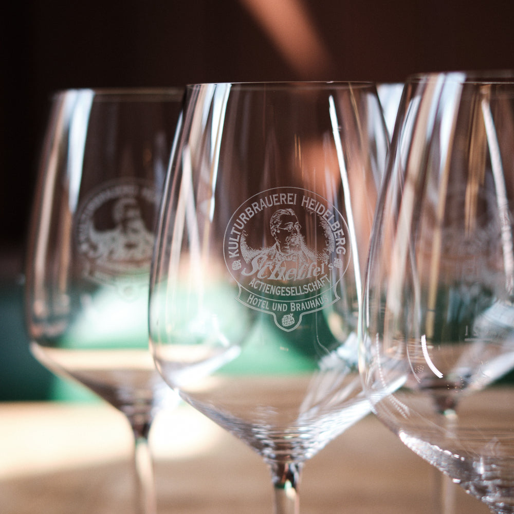 RiedelFeine Weine in der Kulturbrauerei: Die vollmundigen und komplexen Rotweine von unserer Karte servieren wir in Cabernet-Gläsern der Tiroler Glashütte Riedel. In ihnen entfaltet sich das volle Bouquet, während raue Noten sanft geglättet werden. Die Glasform betont Fruchtaromen und reduziert die Bitterkeit des Tannins. Das edel gravierte Scheffel’s-Logo sorgt auch zuhause für Kulturbrauerei-Feeling pur.